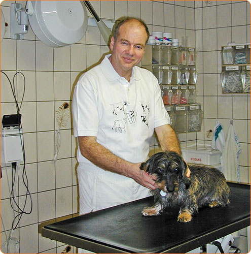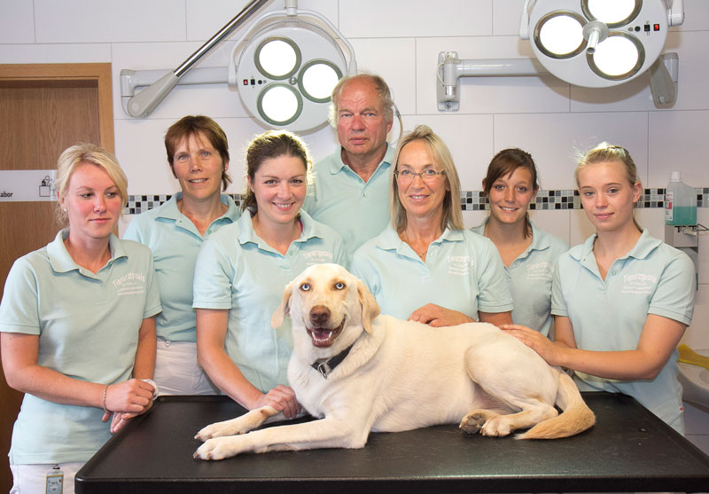 untersucht und behandelt. Seine Ehefrau und 3 Tierarzthelferinnen stehen